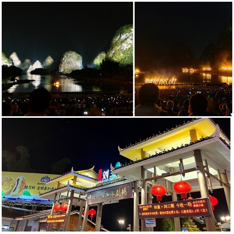 晚餐結束后,一同觀賞由導演張藝謀導演的全世界第一部全新概念的“大型山水實景演出”——印象劉三姐,欣賞史無前例的桂林漓江風情,感受大型經典山歌、民族風情、漓江漁火等元素與方圓兩公里的漓江水域,十二座背景山峰的山水劇場的有機融合;漓江的水,桂林的山,成功詮釋了人與自然的和諧關系。
