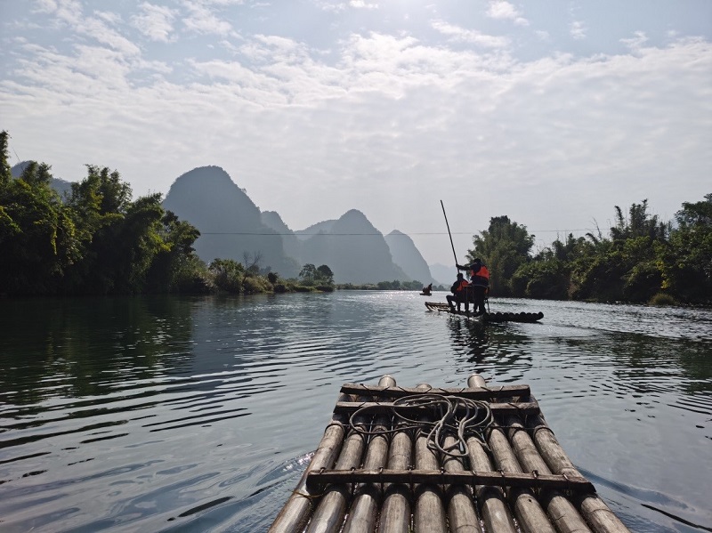 10月24第一個行程便是體驗遇龍河竹筏漂流,游覽“不是漓江勝似漓江”的遇龍河竹筏:一路漂蕩、一路歡叫,欣賞兩岸美景、感受人工撐筏靜靜漂流帶來的別樣享受。遠處層巒疊嶂,仿佛一幅山水水墨畫懸掛在眼前,而我們都是畫中人。