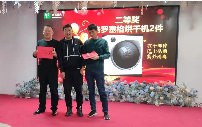 進行簡單的餐敘交流后就進入了熱鬧的年會環(huán)節(jié),公司員工踴躍報名參加的年會表演受到大家一致好評,每位表演者都情緒激昂,帶動了整個晚會的活力和氛圍,表演者來自公司的不同的年齡段,從50后到90后,代表不同的時代人,也抒發(fā)了不同年代的情懷。即使唱歌的水平各有參差,但帶給我們的驚喜和欽佩是同等的。抽獎環(huán)節(jié)和有獎競猜環(huán)節(jié)更是將年會的氣氛推向高潮,抽獎環(huán)節(jié)共設置三輪,獎品分別是:一等獎華為手機1份、二等獎滾筒烘干機2份、三等獎美的取暖器6份,互動獎品提供了藍月亮洗衣液共10份,每個人還獲得一份禮包作為伴手禮。